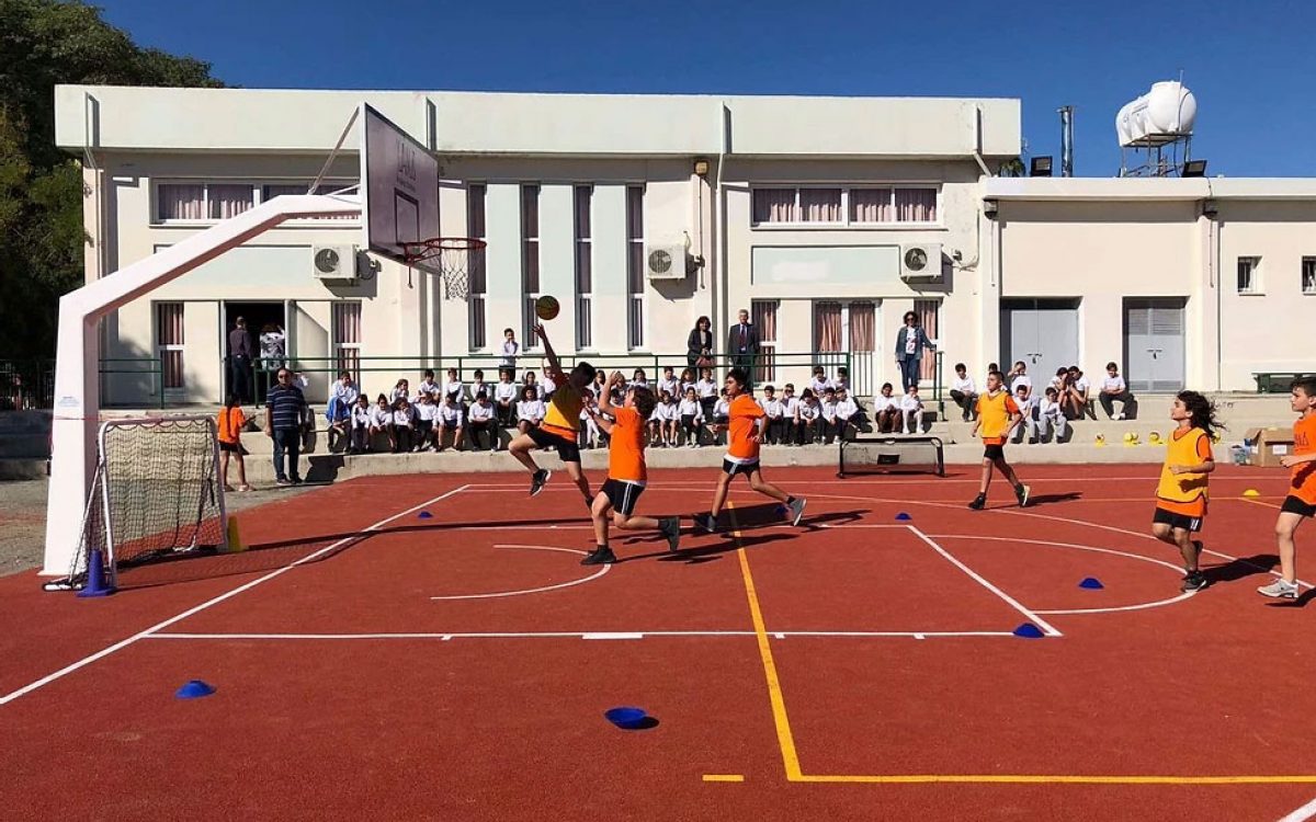 The Yianis Christodoulou Foundation aims to provide better learning opportunities for children in school, as well as ensuring their health and safety. The YCF has funded the purchase and installation of special outdoor tartan (multi-sport) flooring to cover the basket-ball court at the 3rd Kaimakli Primary School. The aim of this donation was both to upgrade the basket-ball court and to ensure the safety of the children. The court is used extensively for PE lessons, for other outdoor activities of the Optional All Day School and Summer School, and for the children’s recreation during break time. The opening was organised on Monday 29th of October 2018 in the presence of the Founder of the YCF and the Director of Primary Education Mr Christos Chatziathanasiou, who represented the Minister of Education and Culture (MOEC).